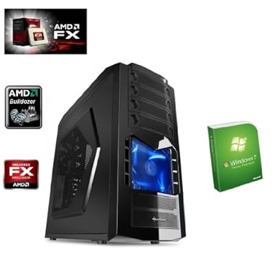 • Cpu: (AMD Bulldozer FX-Serie Six-Core FX-6100 (6x 3.33 GHz) Socket AM3 + • cpu coolers: CPU cooler super quiet Alpine 64 Pro super quiet • Solid State Drive: 120 Gb Corsair Force 3 SATTA III 6Gb´s 525 MBps read / 500 MBps write • Hard disk: 1x 1000 GB SATAIII 6Gb/s 7200 rpm • Graphics: Ati Radeon HD 6850 1 GB • Memory: 2x 4GB DDR3 PC-1333 RAM in dual channel • Mainboard: ASUS M5A99X EVO (The motherboard is based on the 990X/SB950 AMD chipset • Interfaces : 4x DDR3 memory slots (possible up to 32GB) • Expansion slots: 2x PCIe 2.0 x16, 1x PCIe 2.0 x16, 2x PCIe 2.0 x1, 1x PCI • External connectors: 2x USB 3.0 , 8x USB 2.0, 1x eSATAp, 1x eSATA • 1x Gb LAN, 7.1 audio, 1x PS / 2 Combo • Internal connectors: 2 x USB 3.0, 6x USB 2.0, 6x SATA 6Gb/s with RAID 0/1/5/10, 2x SATA II • 1x Firewire, 1x CPU fan PWM, 4x fan • Special features: All solid capacitors, ATI CrossFireX, Nvidia SLI, UEFI • bruner: 24x MV-format DVD burner (CD-R, CD-RW, DVD ± R, DVD ± RW, DVD + R9 (DL), LS, SR • with Lightscribe incl. Nero full version) • Blu-ray burners : 10x read Bluray / writing software incl. • Case: Sharkoon Scorpio with hot-swap - • 2x 3.5 "external hot-swap, front (blue illuminated) • 2x USB2.0, 1x eSATA, 1x headphone, 1x microphone • Power Supply: Xilence 600 Watt 80+ Special Silent • OS: Fully Installed Win7 Home Premium 64 bit DVD